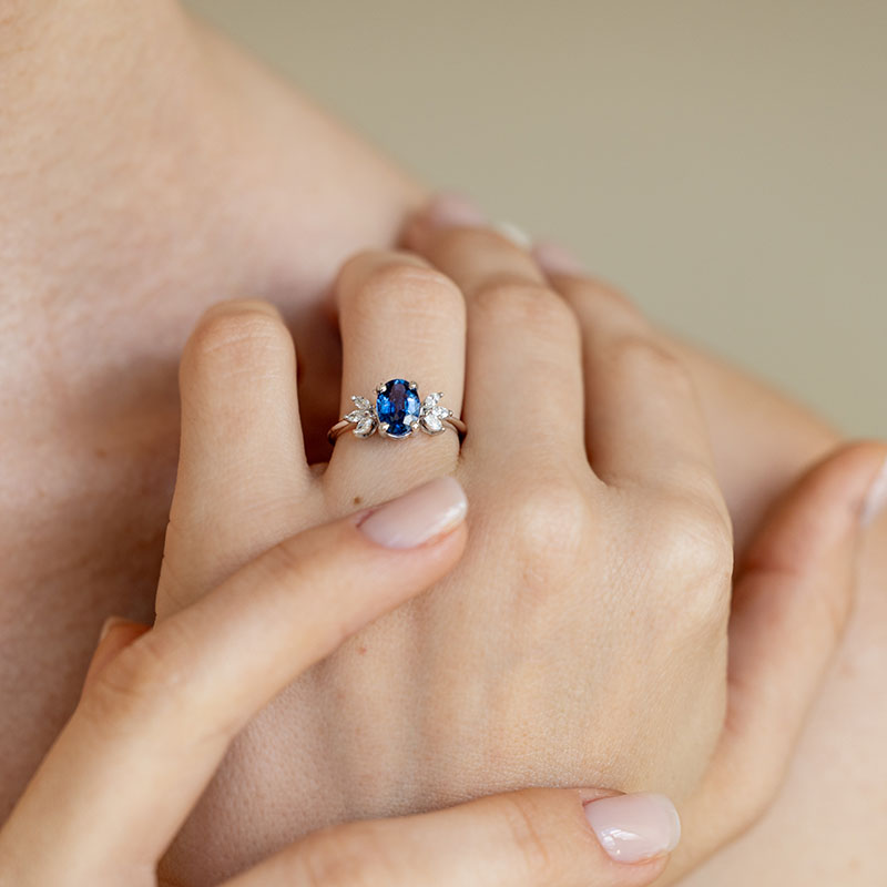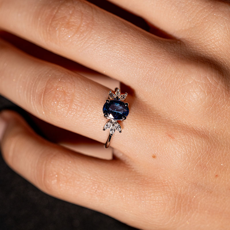 Available in size 16.2, 14K gold with 1.34 ct Ceylon sapphire and 6 diamonds tw 0.177 ct.