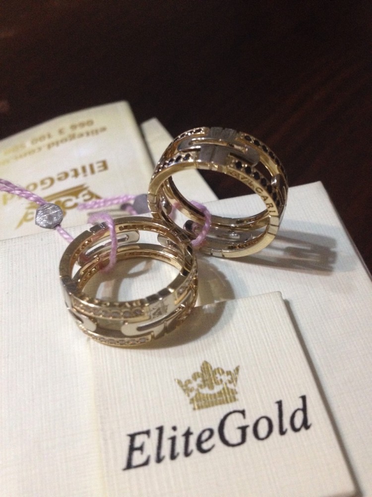 PARENTESI unisex ring with BVLGARI style stones from Elitegold can be used as an everyday accessory, as well as a wedding accessory.