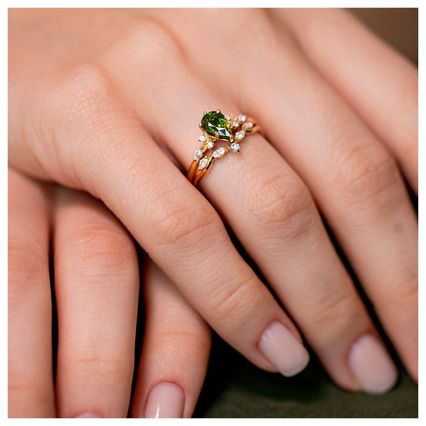 The presence of additional stones in the decoration, according to the shape, size and quantity. They can be located in different places on the ring, these are the stones in the ring, not counting the central one.