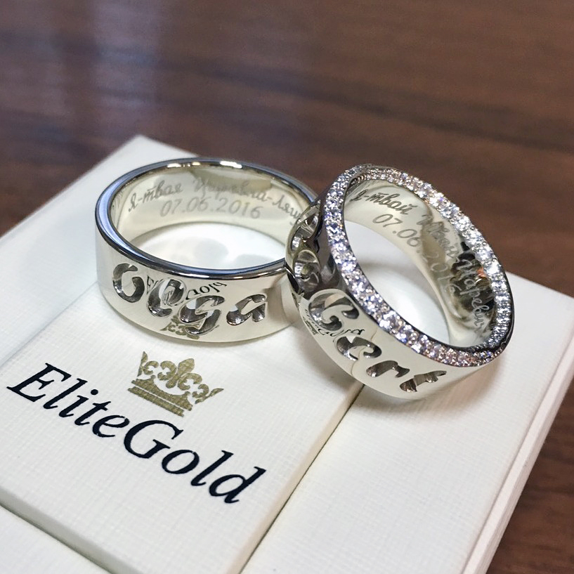 Wedding rings – not just a beautiful decoration, but also a symbol of the union of the hearts of two lovers, the first family heirloom that will protect your union all your life. Each couple seeks not only to demonstrate taste, but also to emphasize their individuality with the help of iconic jewelry, the best manifestation of which is wedding rings with the names of loved ones. The peculiarity of the presented accessories lies not only in the stylish engraving of the names of the newlyweds on the rings, but also in decorating them with elegant rounded inserts.