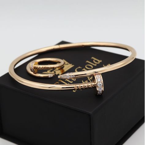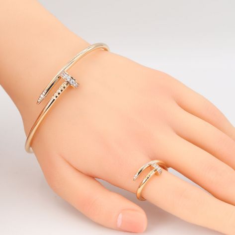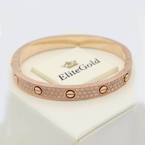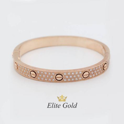 Жесткий браслет с россыпью камней в стиле Картье