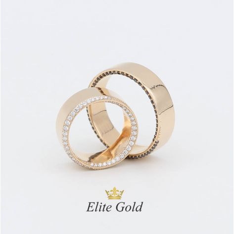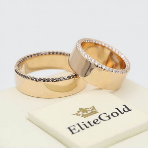 Общий вес: 28 гр / Ширина женского кольца: 10.5 мм / Ширина мужского кольца: 13 мм
