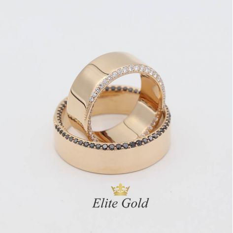 Общий вес: 14 гр / Ширина женского кольца: 5.5 мм / Ширина мужского кольца: 6 мм