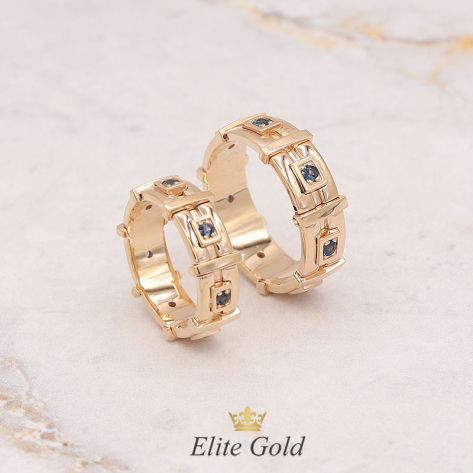Общий вес: 14 гр / Ширина женского кольца: 6.1 мм / Ширина мужского кольца: 6.5 мм