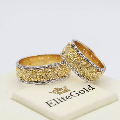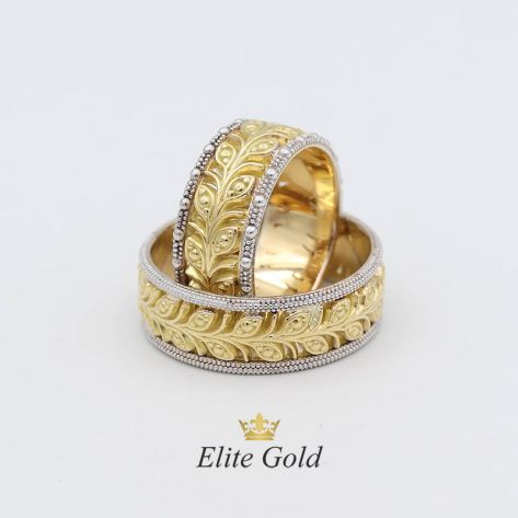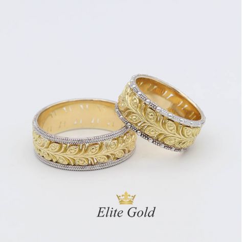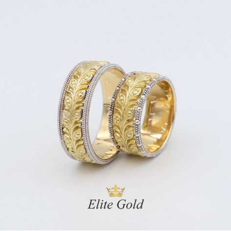 Общий вес: 17.3 гр / Ширина женского кольца: 7 мм / Ширина мужского кольца: 7.5 мм