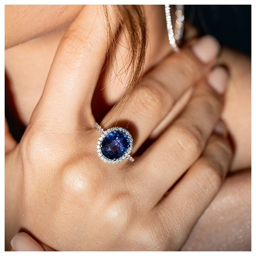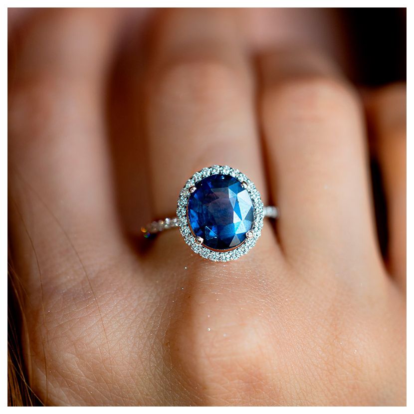 В наличии в шоу-руме в 17 размере, белое золото 750 пробы с сапфиром 5,47 карат (коллекционный, негретый) и россыпью бриллиантов 0,55 карат. Возможно изготовление под заказ с любыми камнями