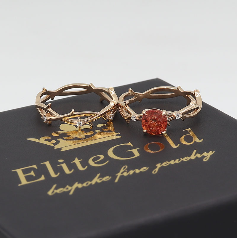 Очень стильный свадебный аксессуар – набор колец невесты Sienna Bridal set от ювелиров Еlitegold приглянётся девушке, собирающейся выйти замуж. Практичный комплект включает в себя два, гармонично сочетающихся, кольца – помолвочного и обручального, выполненных в единой стилистике.