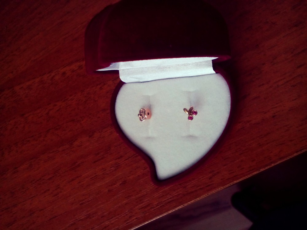 Ñåðåæêè-ïóñåòè ó ôîðì³ âèøåíüêè â³ä þâåë³ð³â Ålitegold âèêîíàí³ ³ç çîëîòà ç ãëÿíñîâîþ ïîâåðõíåþ, ìàþòü äîâæèíó 5 ìì, øèðèíó 3 ìì. Êîë³ð çîëîòà òà êàìåíþ áóäü-ÿê³, íà âàø ðîçñóä.