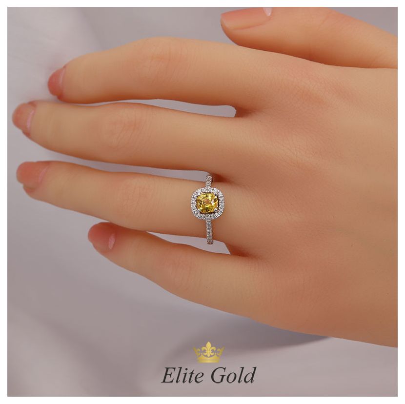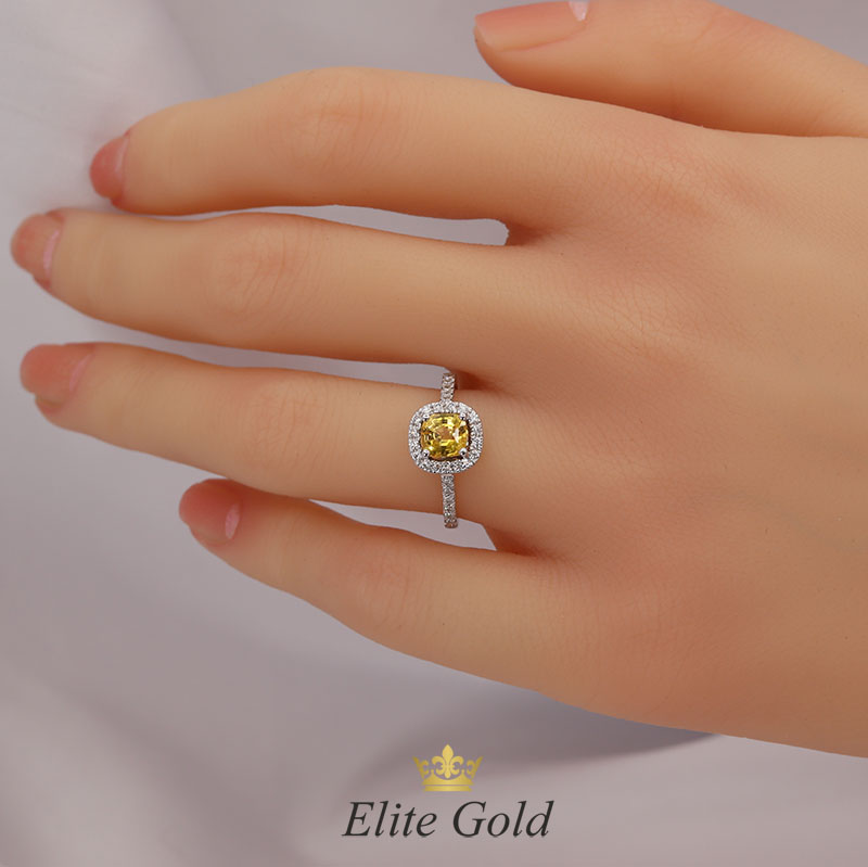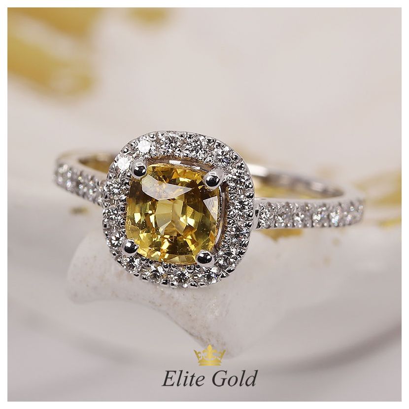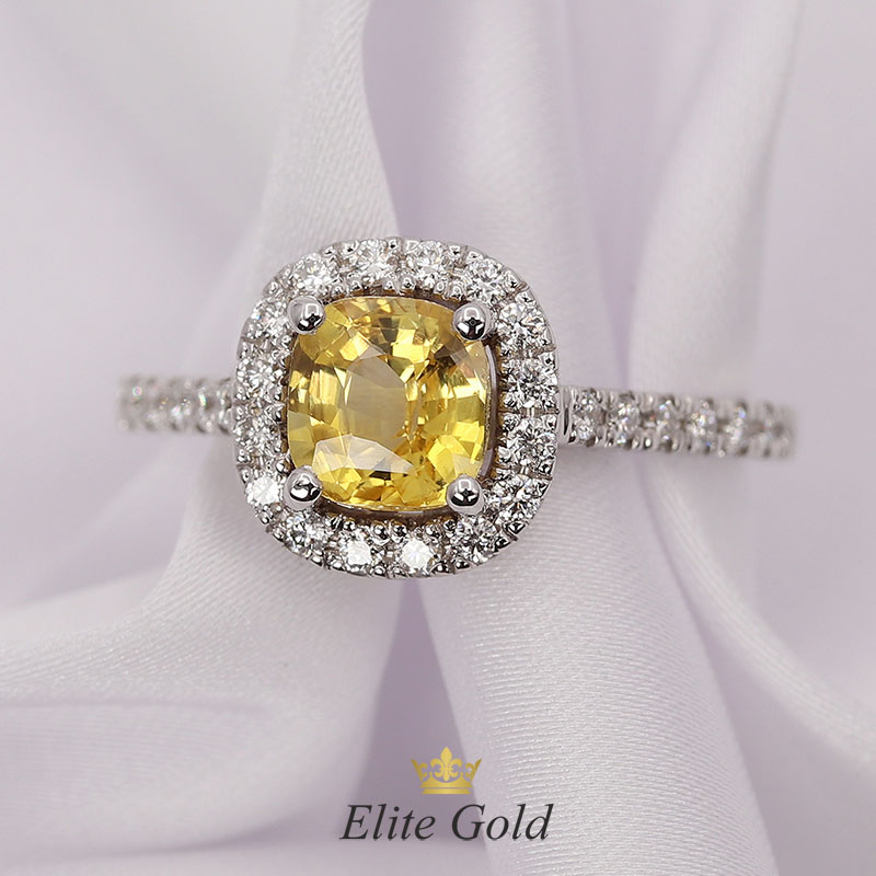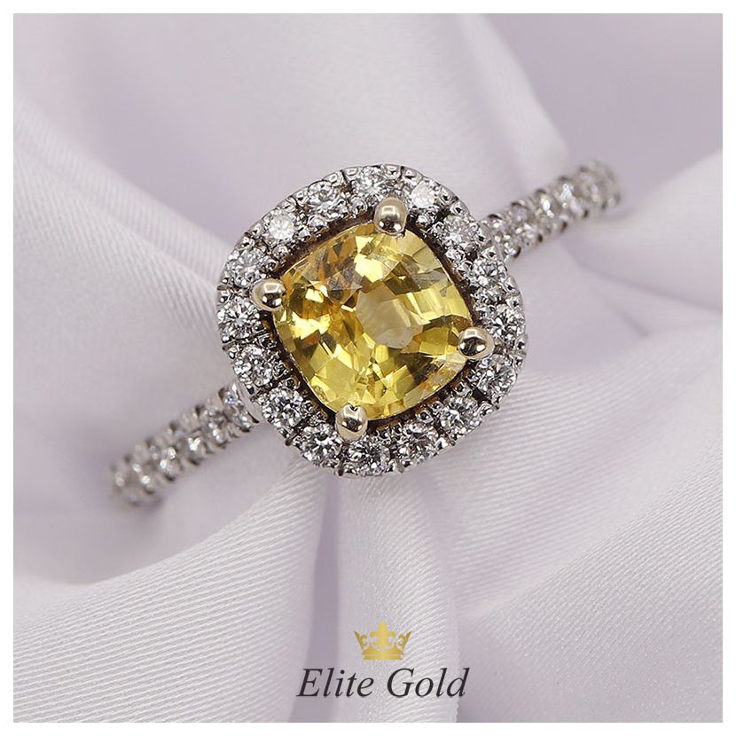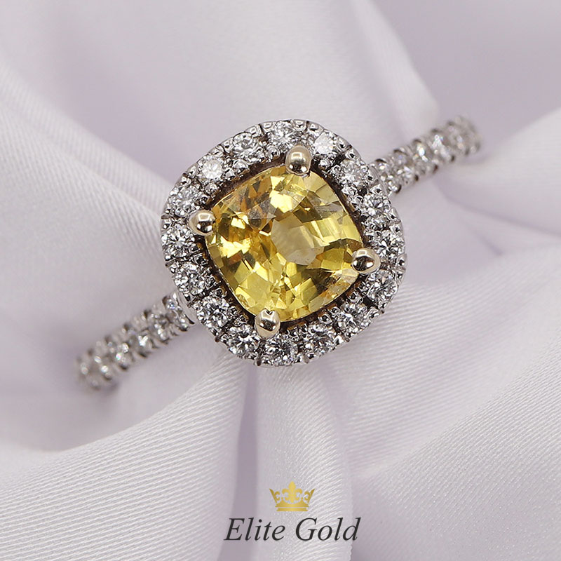 В наявності у шоурумі в розмірі 16.5, жовтий сапфір 1,04 карат, розсип діамантів 0,22 карат, золото 585 проби. Можливе індивідуальне замовлення з іншим камінням.