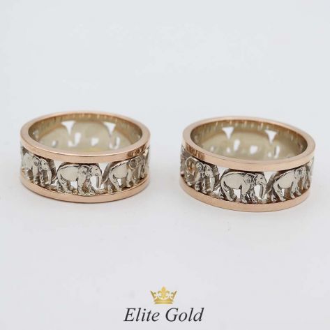 Загальна вага: 14.1 гр / Ширина жіночої обручки: 5 мм / Ширина чоловічої обручки: 6 мм
