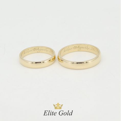Загальна вага: 5.8 гр / Ширина жіночої обручки: 4 мм / Ширина чоловічої обручки: 5 мм