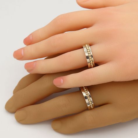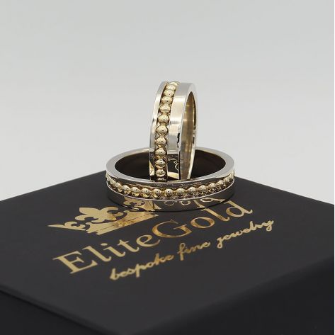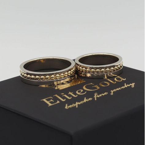 Загальна вага: 14 гр / Ширина жіночої обручки: 7 мм / Ширина чоловічої обручки: 7.5 мм