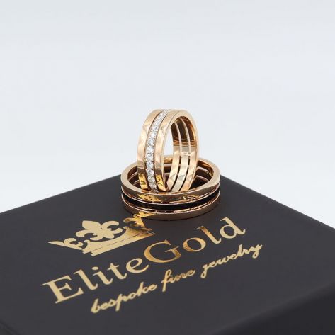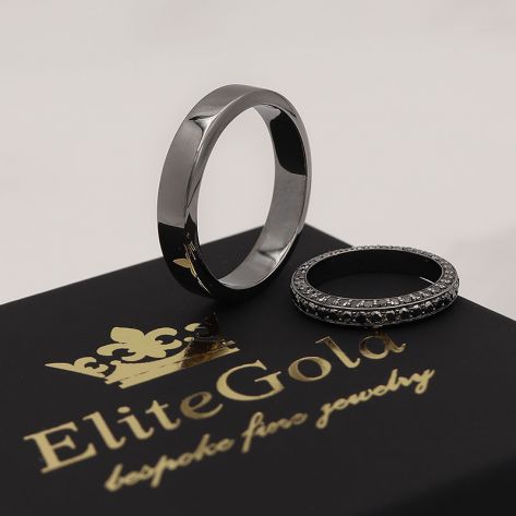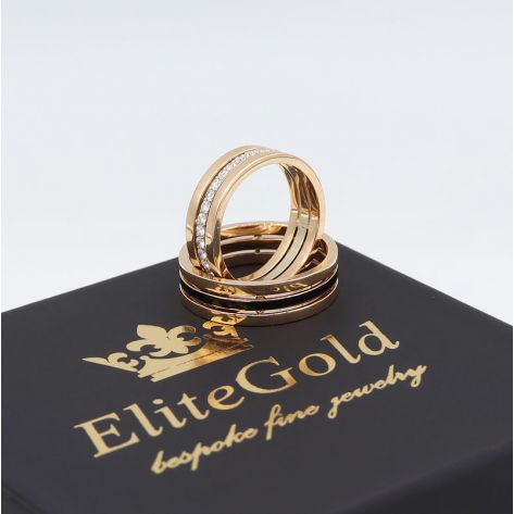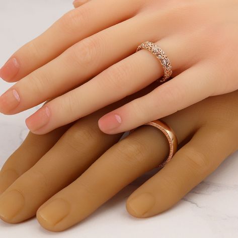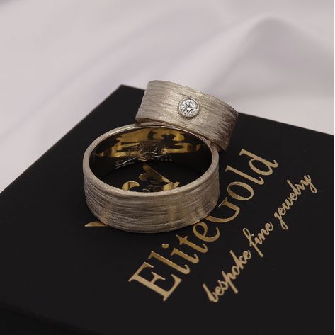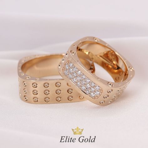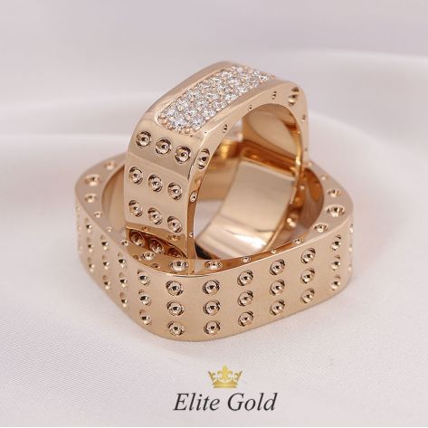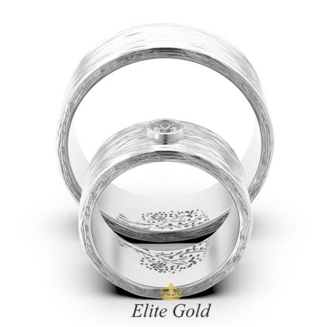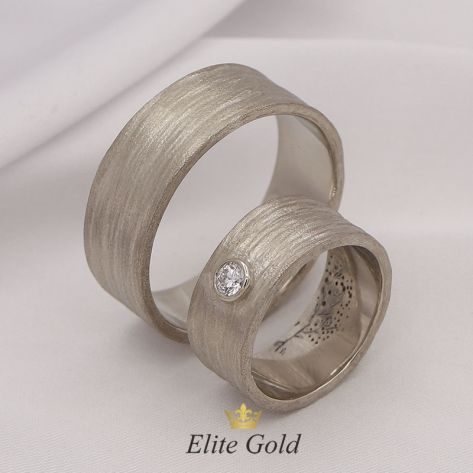 Загальна вага: 11.8 гр / Ширина жіночої обручки: 3 мм / Ширина чоловічої обручки: 4.2 мм