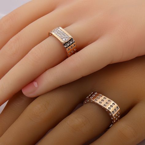 Загальна вага: 21 гр / Ширина жіночої обручки: 7.2 мм / Ширина чоловічої обручки: 7.2 мм