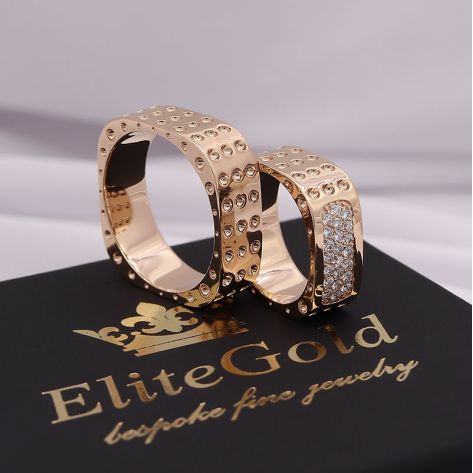 Загальна вага: 13.5 гр / Ширина жіночої обручки: 6.2 мм / Ширина чоловічої обручки: 6.2 мм