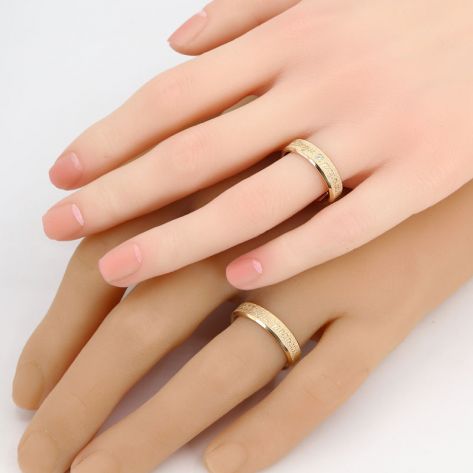 Загальна вага: 8.9 гр / Ширина жіночої обручки: 4 мм / Ширина чоловічої обручки: 4 мм
