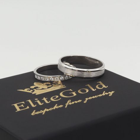 Загальна вага: 11 гр / Ширина жіночої обручки: 5 мм / Ширина чоловічої обручки: 6 мм