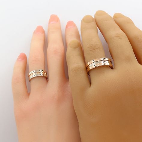 Загальна вага: 13.5 гр / Ширина жіночої обручки: 5.6 мм / Ширина чоловічої обручки: 5.6 мм