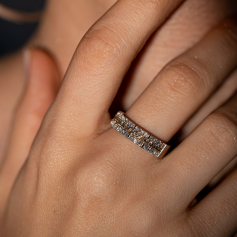 В наявності у шоурумі в 18 розмірі, золото 585 проби з діамантами. Можливе індивідуальне замовлення з іншим камінням.