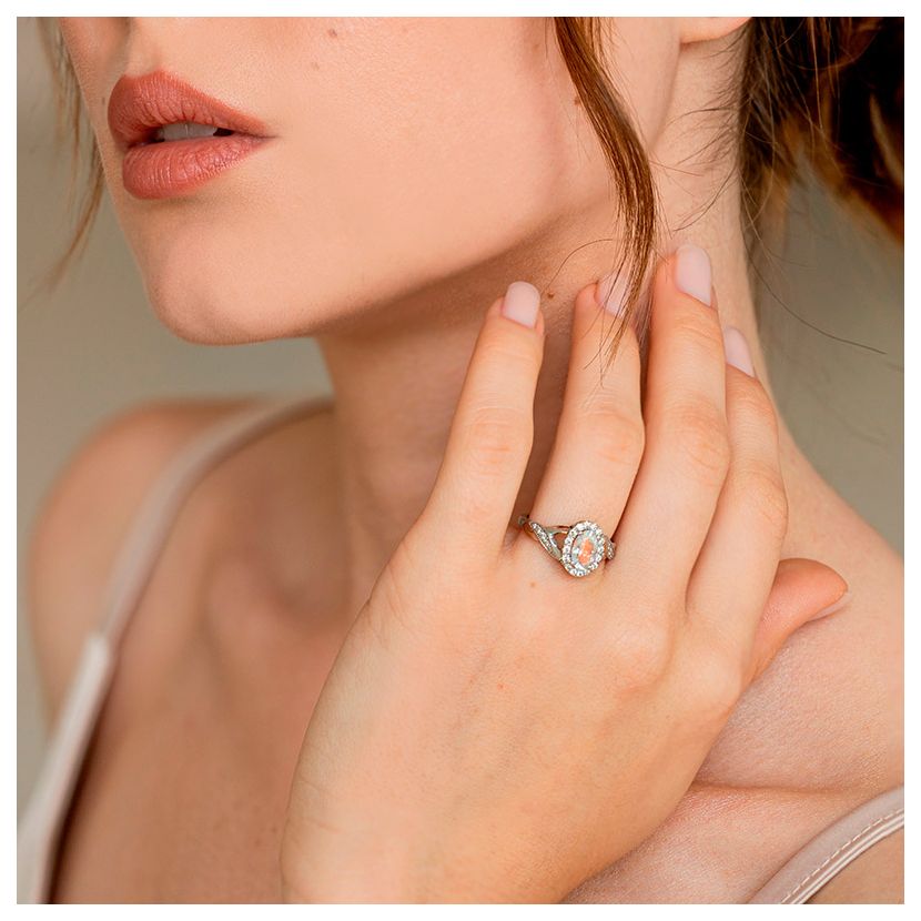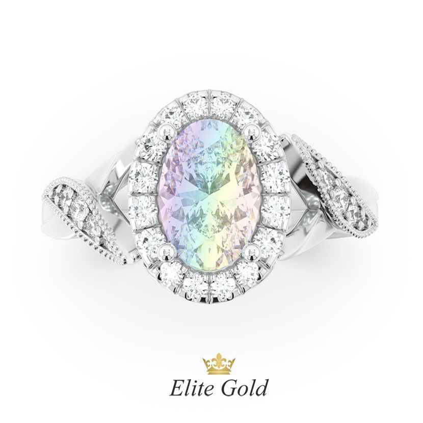 В наявності у шоурумі, у розмірі 16.5 з райдужним місячним каменем (Мадагаскар) 0,80 карат та діамантами 0,27 карат 2/2-3. Можливе індивідуальне замовлення з будь-яким камінням.