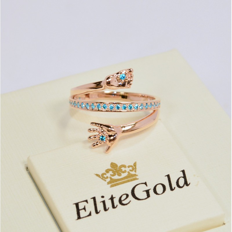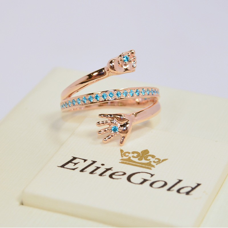 ʳëüöå ìຠíåçâè÷àéíó ñï³ðàëåïîä³áíó ôîðìó, ùî ñêëàäàºòüñÿ ç òðüîõ åëåìåíò³â îá³äêà òà äâîõ íàï³âê³ëåöü, ðîçòàøîâàíèõ çâåðõó òà çíèçó â³ä íüîãî. Öåíòðàëüíà ÷àñòèíà ãëÿíñîâî¿ ïîâåðõí³ âèðîáó äåêîðîâàíà ðîçñèïîì âèòîí÷åíèõ êðóãëèõ âñòàâîê (31 øò.), à íà çàâåðøåííÿ ï³âê³ëåöü ç äâîõ ñòîð³í äèçàéíåðè ðîçì³ñòèëè çìåíøåí³ êîﳿ äèòÿ÷î¿ ðó÷êè òà í³æêè. Íà äîëîí³ òà ï'ÿòî÷ö³ çíàõîäèòüñÿ ïî îäíîìó êàìåíþ, ùî íàäຠïðèêðàñ³ ñòèëüíîãî òà ãàðìîí³éíîãî âèãëÿäó. Âàãà ê³ëüöÿ «Ðó÷êà òà í³æêà» ñêëàäຠ2,8 ãð, øèðèíà 13 ìì.