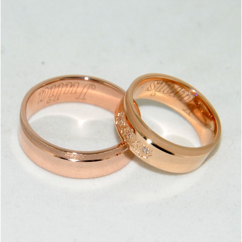 Êîíñòðóêö³éíî ïàðí³ îáðó÷êè «Ç³ðêè» ðó÷íî¿ ðîáîòè â³ä Ålitegold ñêëàäàþòüñÿ ç äâîõ ç÷ëåíîâàíèõ ì³æ ñîáîþ îá³äê³â. Íèæí³é îá³äîê º îáëÿì³âêîþ ïðèêðàñè; â³í òîíøèé çà âåðõí³é ³ ìຠìàòîâó ñòðóêòóðó. Âåðõí³é îá³äîê ãëÿíñîâèé. Ƴíî÷å êîëå÷êî â³äð³çíÿºòüñÿ â³ä ÷îëîâ³÷îãî íàÿâí³ñòþ äåêîðó: íà ãëÿíöåâ³é ïîâåðõí³ îá³äêà âèãðàâ³ðóâàíî ñèìâîë³÷í³ ç³ðêè, ïðèêðàøåí³ òðüîìà âñòàâêàìè êðóãëî¿ ôîðìè (íà ôîòî á³ëîãî êîëüîðó). Çà áàæàííÿì ïàðè íà âíóòð³øíüîìó îá³äêó ê³ëüöÿ ìîæóòü áóòè âèãðàâ³ðîâàí³ âàø³ ³ìåíà, äàòà âåñ³ëëÿ, ñåðöÿ.